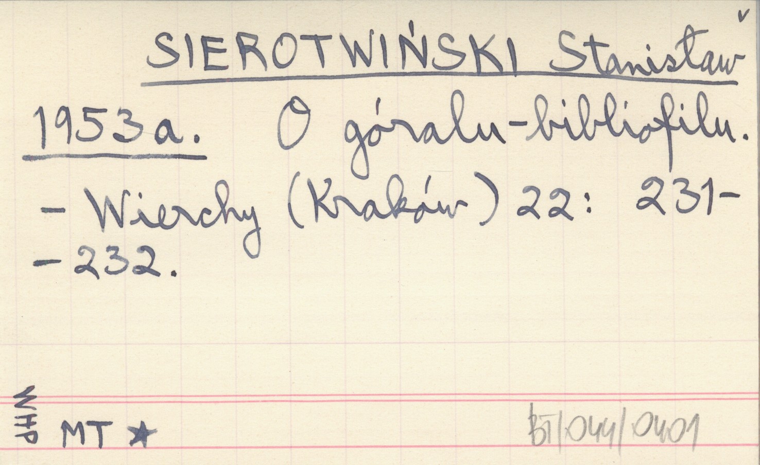 SIEROTWIŃSKI Stanisław 1953 a O góralu-bibliofilu.