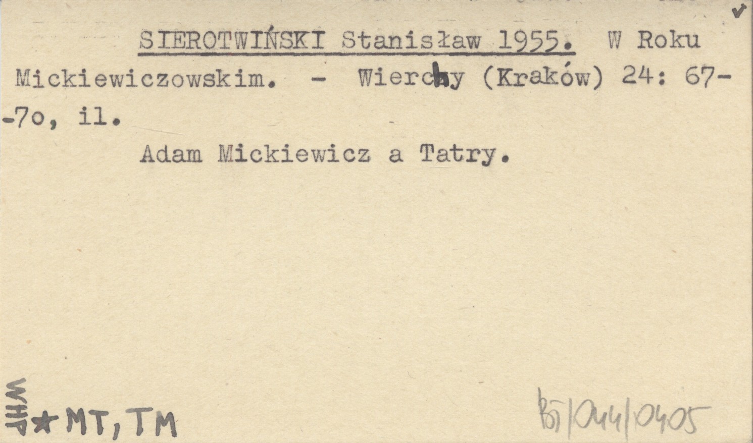SIEROTWIŃSKI Stanisław 1955 W Roku Mickiewiczowskim.