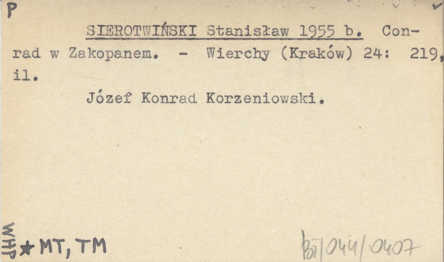 Wierchy (Kraków) , 24: 219, il. Józef Konrad Korzeniowski.