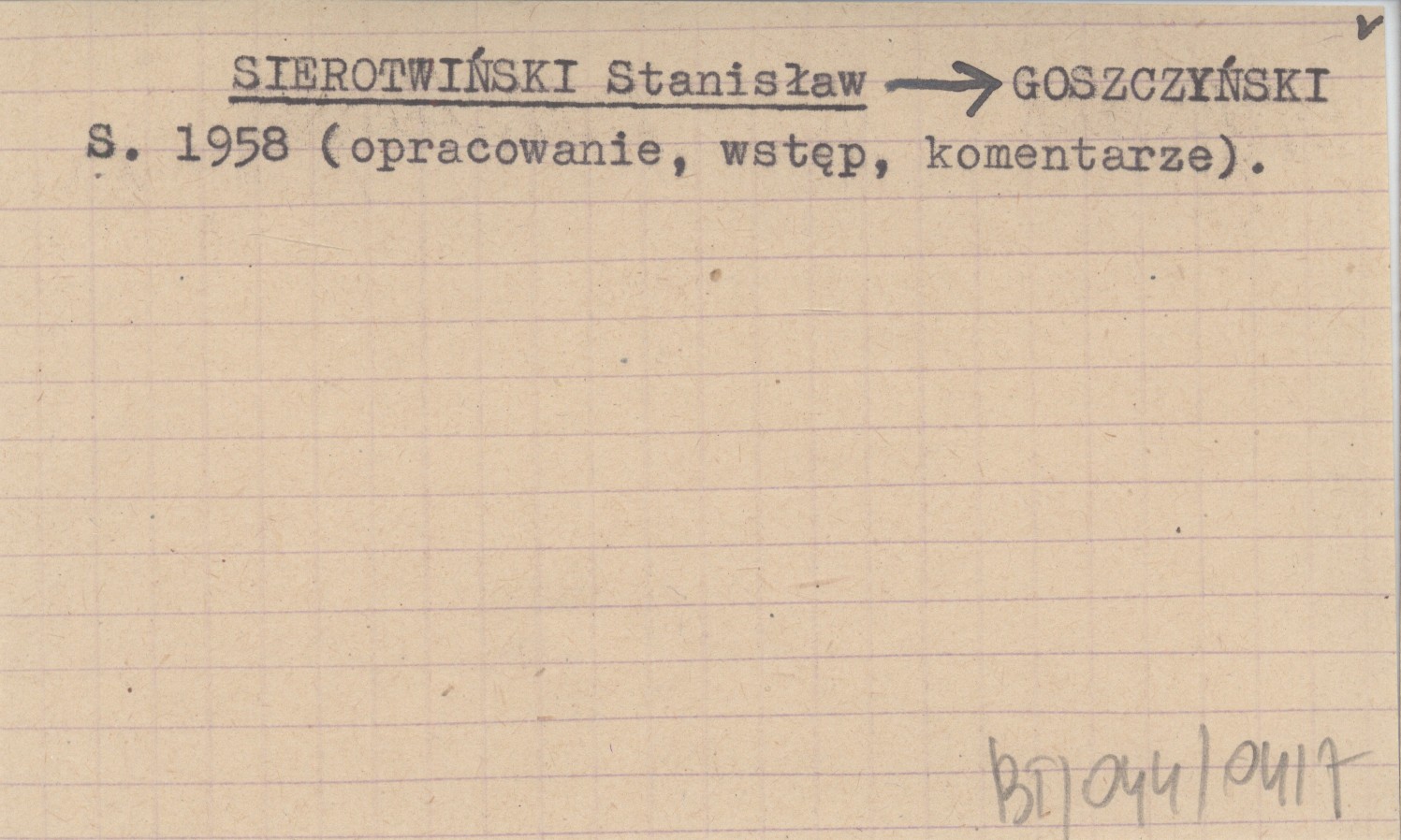GOSZCZYŃSKI S. 1958 (opracowanie, wstęp, komentarze)