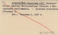 SIEROTWIŃSKI Stanisław 1957 Korespondencja Ignacego Maciejowskiego (Sewera) z Mieczysławem Pawlikowskim.