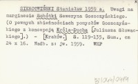 SIEROTWIŃSKI Stanisław 1959 Uwagi na marginesie Sobótki Seweryna Goszczyńskiego. (O pewnych zbieżnościach pomysłów Goszczyńskiego z koncepcją Króla-Ducha [Juliusza Słowackiego]).