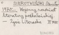 SIEROTWIŃSKI Stanisław 1975... Wojenny rozdział literatury podhalańskiej.