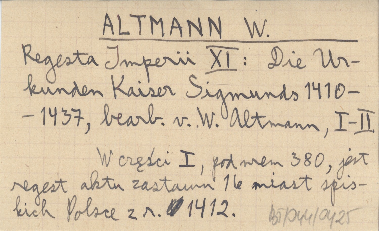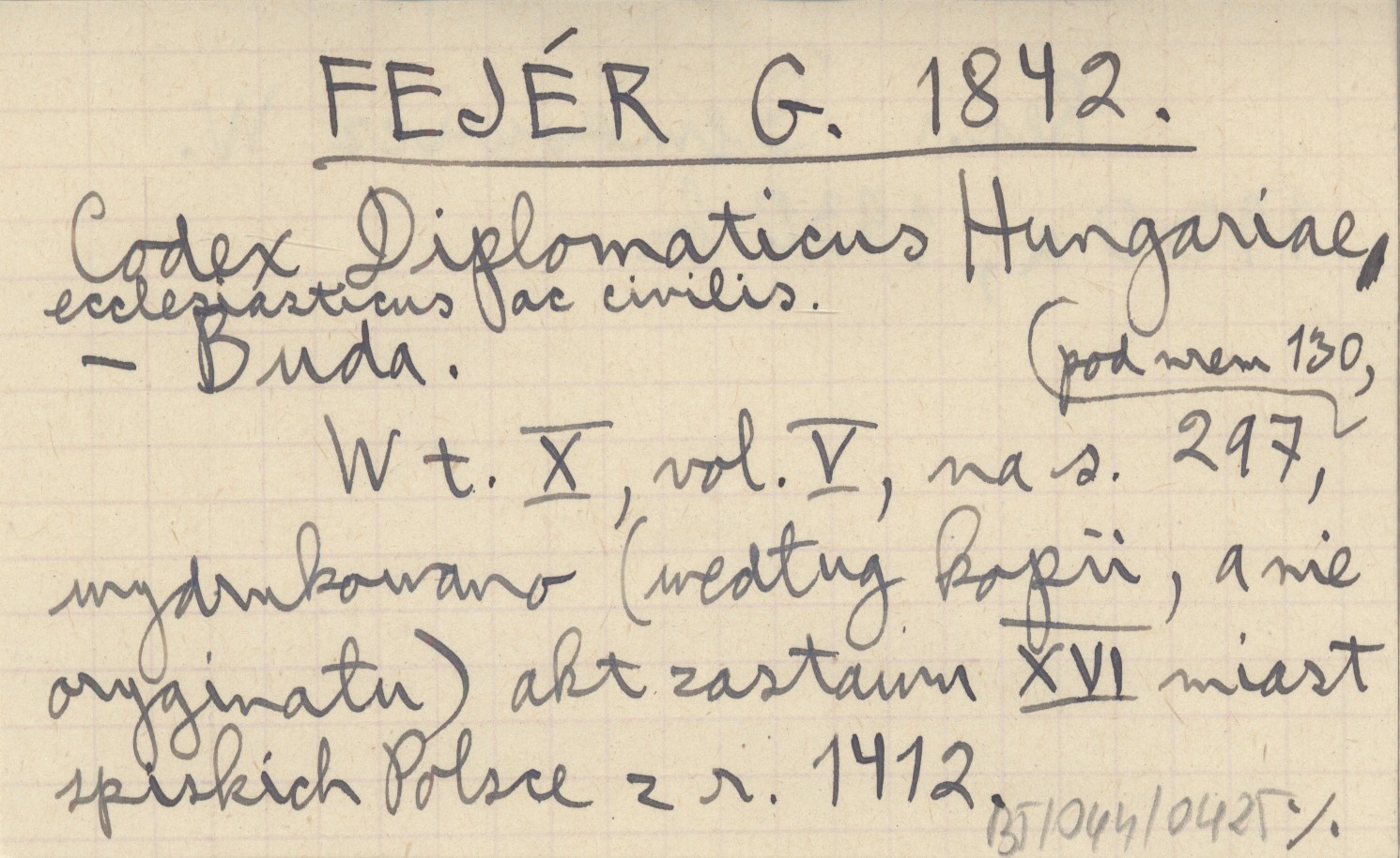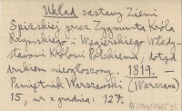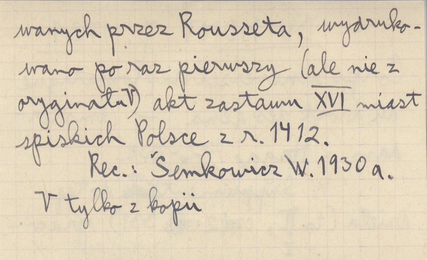 Zagrabie [=Zagrzeb=Agram] , Pergaminowy oryginał aktu zastawu 16 miast spiskich Polsce z r. 1412, znajdujący się (w r. 1930) w Muzeum Czartoryskich w Krakowie, pod numerem 294. Fotokopia powyższego oryginału, jego tekst (łaciński) oraz przekład polski (pierwszy z oryginału) znajdują się w pozycji: SEMKOWICZ W. 1930 a. To samo, ale z przekładem słowackim zamiast polskiego, znajduje się w pozycji: SEMKOWICZ W. 1930 b. Ponadto teksty tego aktu ogłoszono z błędami w następujących pozycjach (po łacinie lub w przekładzie): . Natomiast regestry tego aktu ogłoszono w następujących pozycjach: BEL M. 1723: 106-108, DZIEDUSZYCKI Maurycy 1876: 694-97, DU MONT J. 1739, PRAY G. 1768, KERCHELICH Baltazar [ok. 1770], WAGNER K. 1774, KATONA A. 1790.
