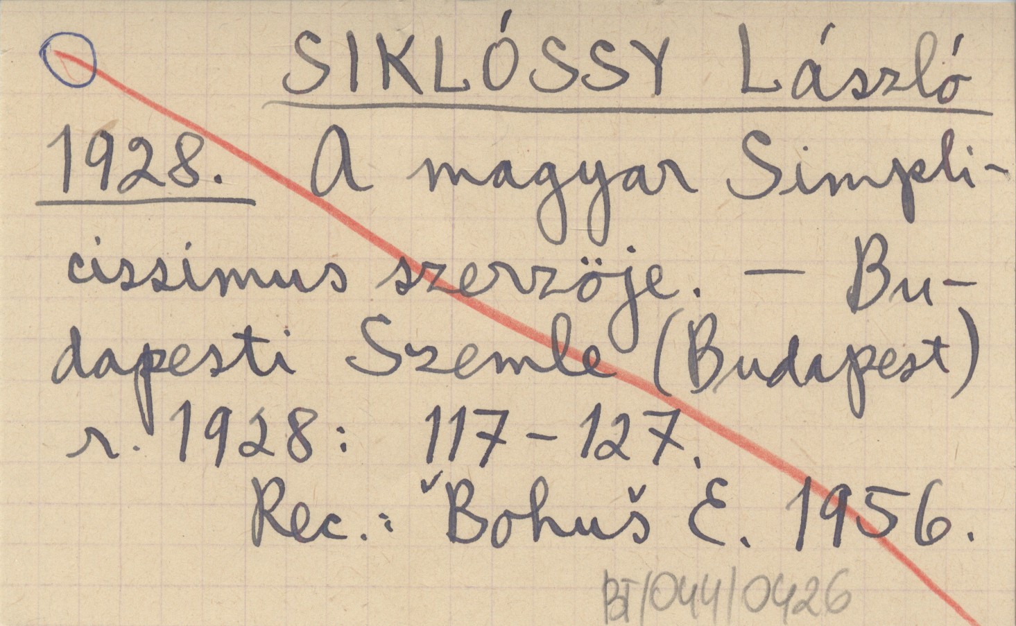 SIKLÓSSY Ladislaus 1928 A magyar Simplicissimus szerzője. (Der Verfasser des Ungarischen Simplicissimus).