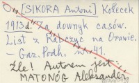 Kołecek [SIKORA Antoni] 1913 d Za downyk casów. List z Rabczyc na Orawie.