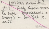 [SIKORA Antoni ks.] 1914 Kiedy Kubowi umarła baba... (Opowiadanie z Orawy).
