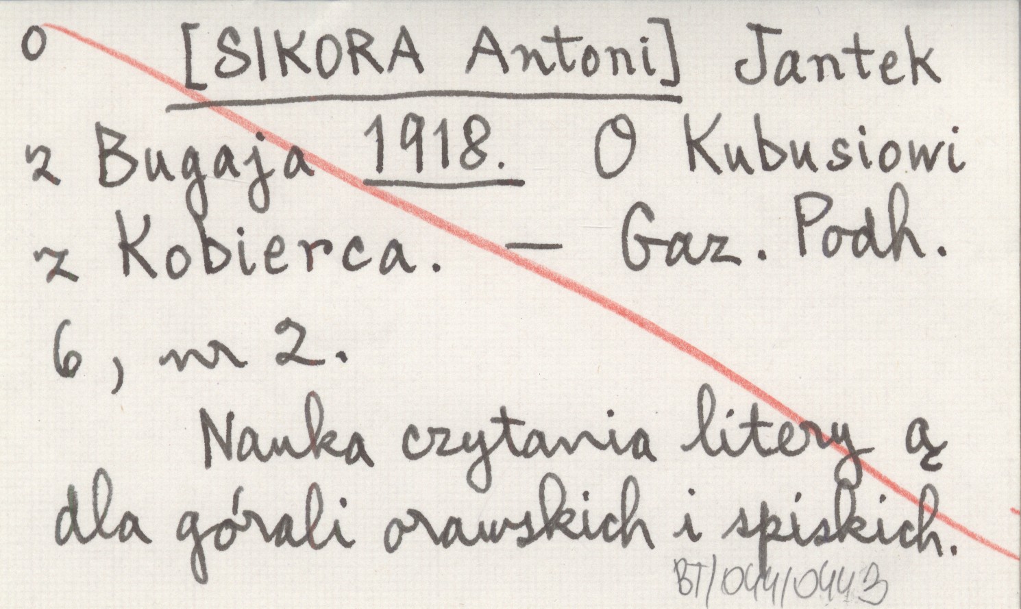Jantek z Bugaja [SIKORA Antoni ks.] 1918... O Kubusiowi z Kocierca.