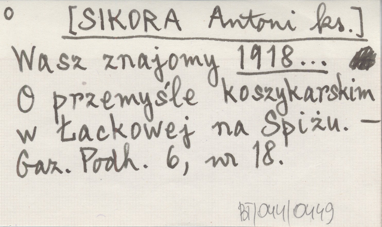 Wasz znajomy [SIKORA Antoni ks.] 1918... O przemyśle koszykarskim w Łackowej na Spiżu.