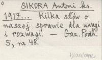 SIKORA Antoni ks. 1917... Kilka słów o naszej sprawie dla uwagi i rozwagi.