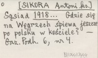 Sąsiad [SIKORA Antoni ks.] 1918... Gdzie się na Węgrzech śpiewa jeszcze po polsku w kościele?