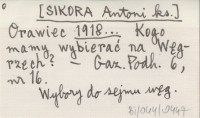 Orawiec [SIKORA Antoni ks.] 1918... Kogo mamy wybierać na Węgrzech?