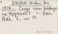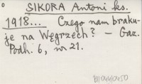 SIKORA Antoni ks. 1918... Czego nam brakuje na Węgrzech?