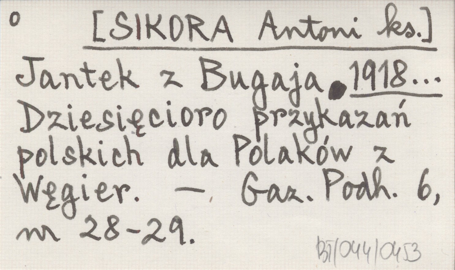 Jantek z Bugaja [SIKORA Antoni ks.] 1918... Dziesięcioro przykazań polskich dla Polaków z Węgier.