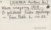 Wasz znajomy [SIKORA Antoni ks.] 1918... O polskość ludu spiskiego.
