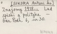 Znajomy [SIKORA Antoni ks.] 1918... Lud spiski a polityka.