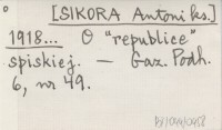 [SIKORA Antoni ks.] 1918... O "republice" spiskiej.