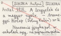 SZIKORA Antal [SIKORA Antoni] 1918 A lengyelek és a magyar nyelv.
