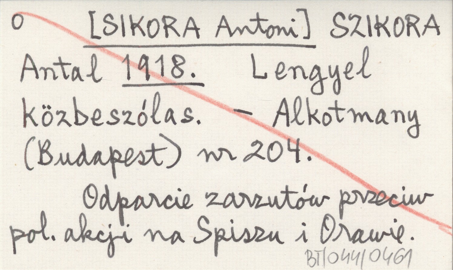 SZIKORA Antal [SIKORA Antoni] 1918 Lengyel közbeszólas.