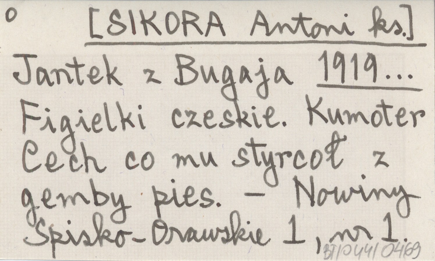 Jantek z Bugaja [SIKORA Antoni ks.] 1919... Figielki czeskie. Kumoter Cech co mu styrcoł z gemby pies.