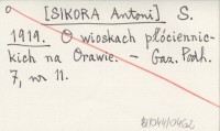 S. [SIKORA Antoni] 1919 O wioskach płóciennickich na Orawie.