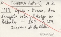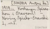 [SIKORA Antoni ks.] 1919... Kochanym Spiszakom i Orawcom!
