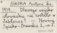 SIKORA Antoni ks. 1919... Dlaczego wojsko słowackie nie zostało w Jabłonce?