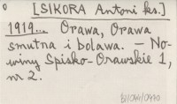 [SIKORA Antoni ks.] 1919... Orawa, Orawa smutna i bolawa.