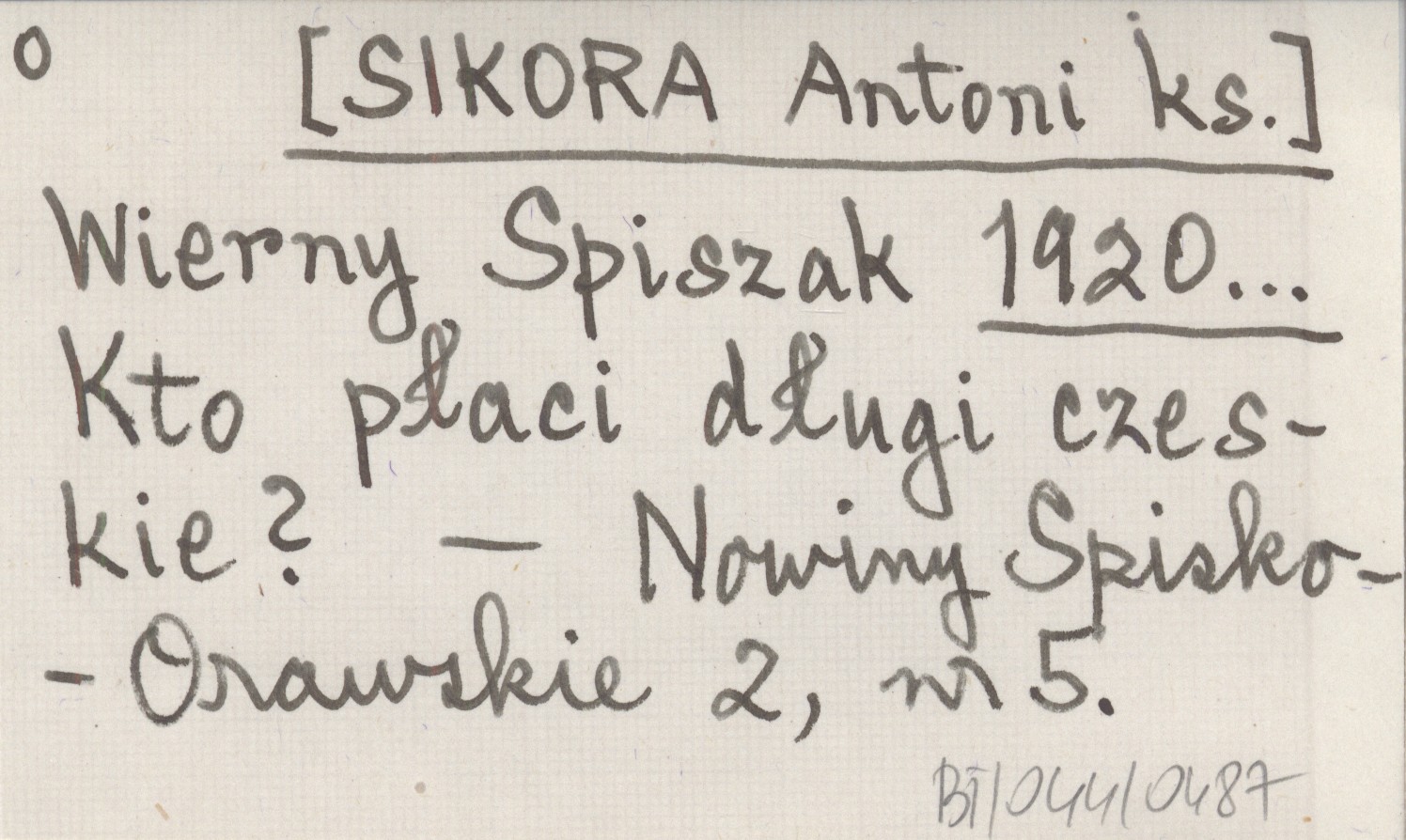 Wierny Spiszak [SIKORA Antoni ks.] 1920... Kto płaci długi czeskie?