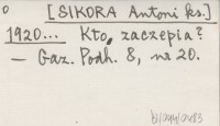 [SIKORA Antoni ks.] 1920... Kto zaczepia?