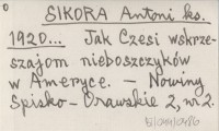 SIKORA Antoni ks. 1920... Jak Czesi wskrzeszajom nieboszczyków w Ameryce.