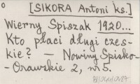 Wierny Spiszak [SIKORA Antoni ks.] 1920... Kto płaci długi czeskie?