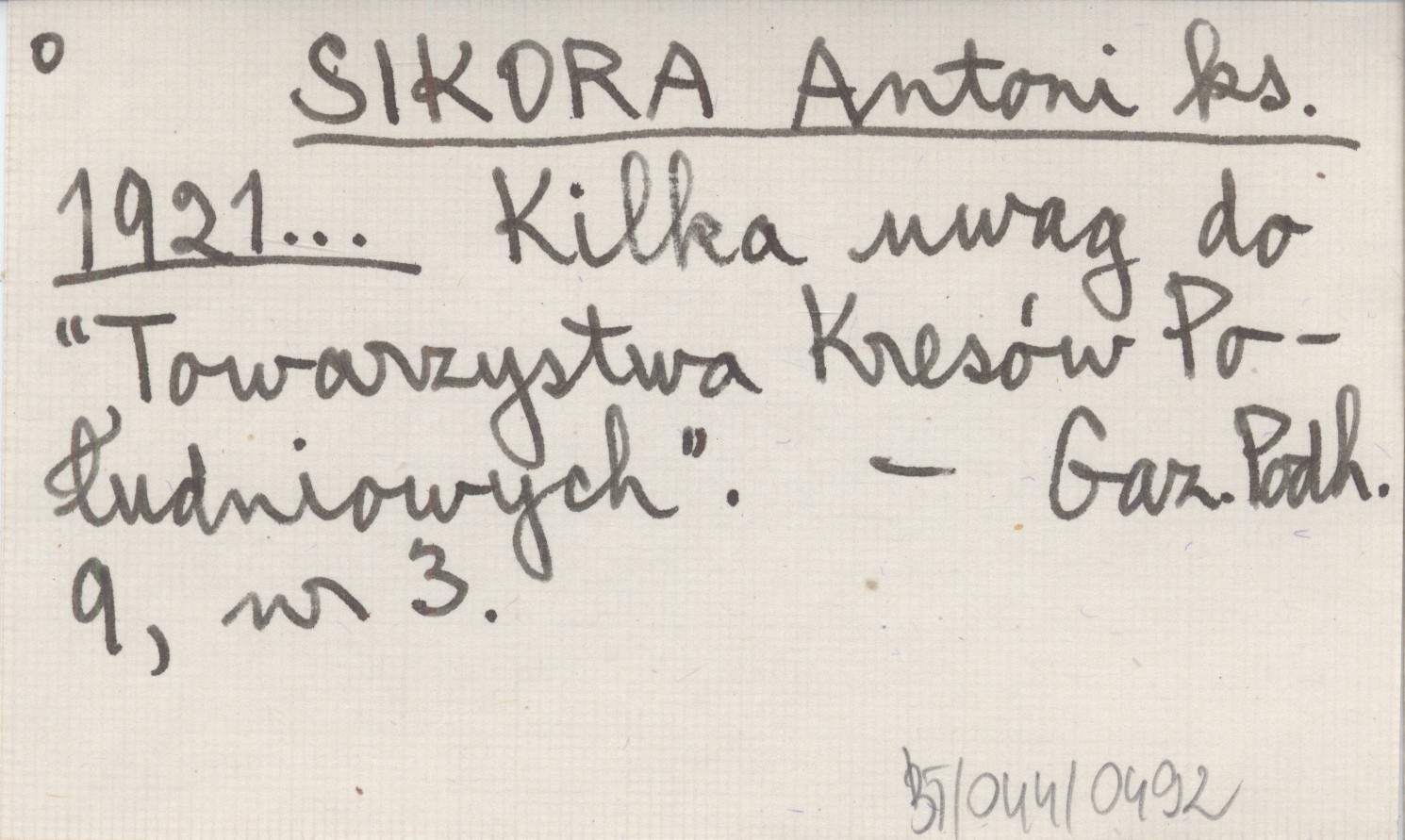 SIKORA Antoni ks. 1921... Kilka uwag do "Towarzystwa Kresów Południowych".