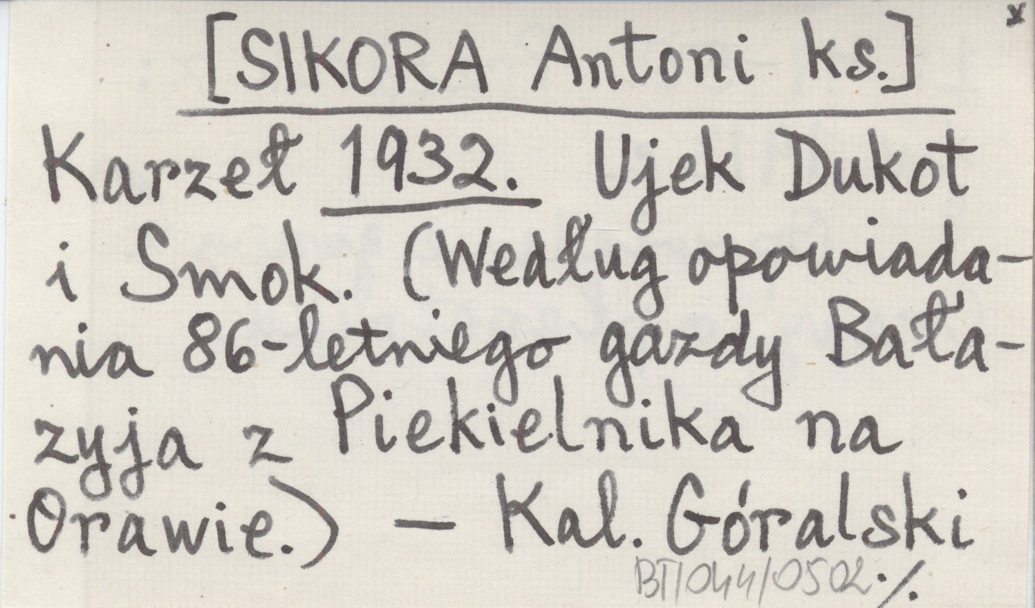Karzeł [SIKORA Antoni ks.] 1932 Ujek Dukot i Smok. (Według opowiadania 86-letniego gazdy Bałazyja z Piekielnika na Orawie).