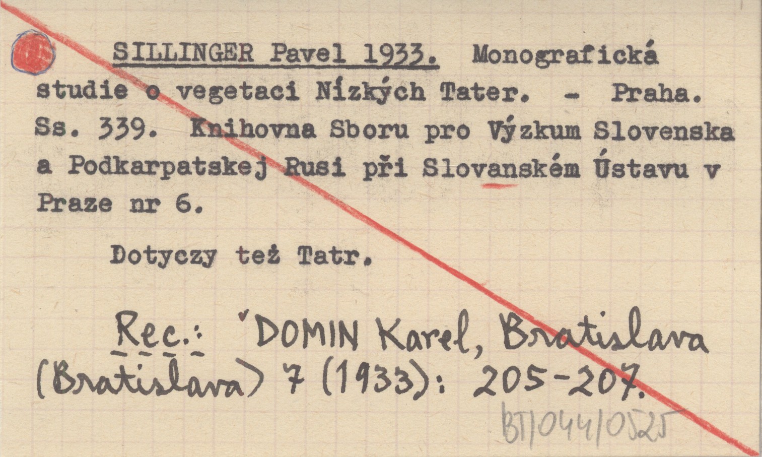 SILLINGER Pavel 1933 Monografická studie o vegetaci Nízkých Tater.