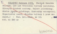 SILNICKI Tadeusz 1933 Pamięci Oswalda Balzera. (50 lat tworzenia kultury narodowej. Olbrzymi dorobek naukowy. Talent polemiczny. Mistrz języka polskiego. Znakomity nauczyciel. Organizator nauki. Obrońca kultury i praw naszych).