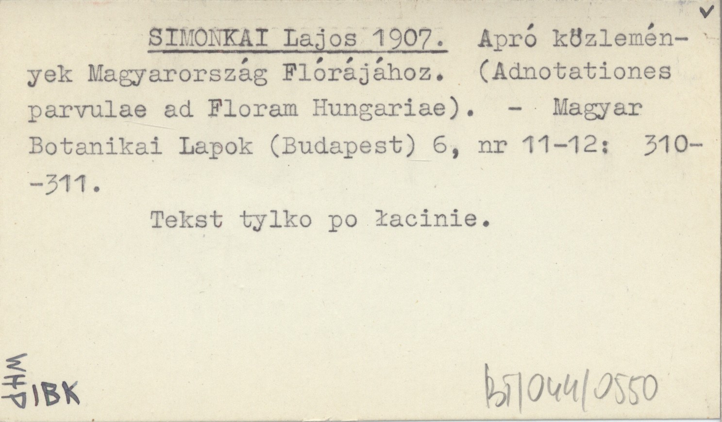 SIMONKAI Lajos 1907 Apró közlemények Magyarország Flórájához. (Adnotationes parvulae ad Floram Hungariae).