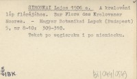 SIMONKAI Lajos 1906 a A kralováni láp flórájához. Zur Flora des Kralovaner Moores.