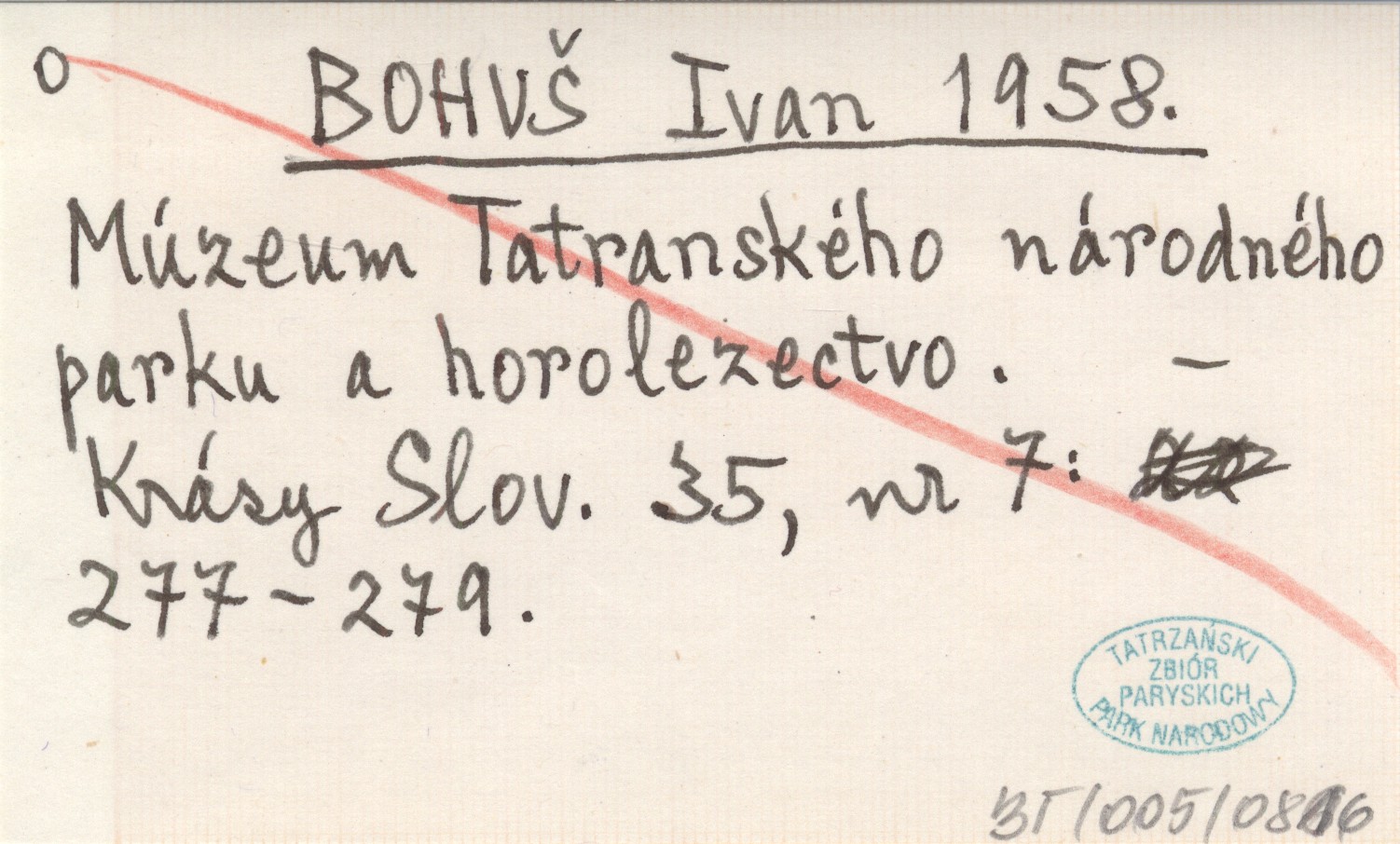 BOHUŠ Ivan 1958 Múzeum Tatranského národného parku a horolezectvo.