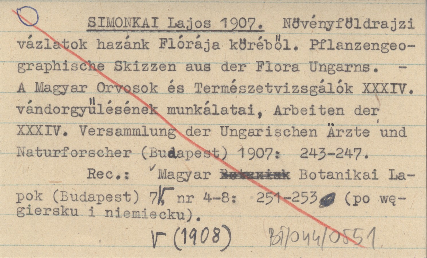 SIMONKAI Lajos 1907 Növényföldrajzi vázlatok hazánk Flórája köréből. Pflanzengeographische Skizzen aus der Flora Ungarns.