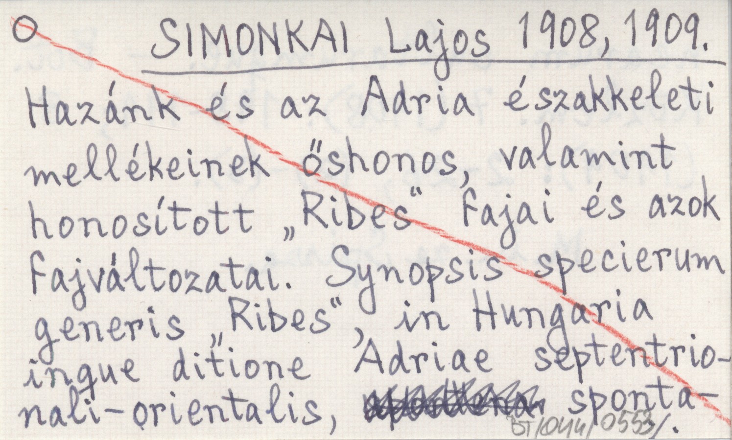 SIMONKAI Lajos 1908, 1909 Hazánk és az Adria északkeleti mellékeinek őshonos, valamint honosított "Ribes" fajai és azok fajváltozatai. Synopsis specierum generis "Ribes", in Hungaria inque ditione Adriae septentrionali-orientalis, spontanearum culturumque.