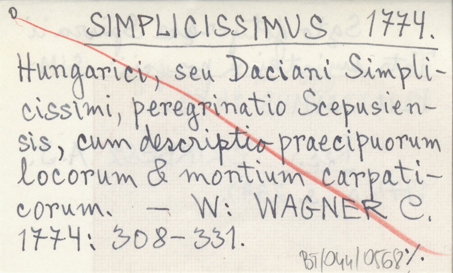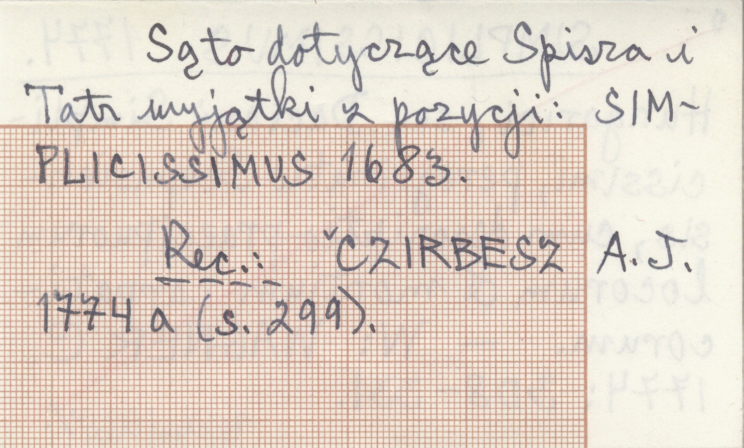 WAGNER C. 1774 , S. 308-331. Są to dotyczące Spisza i Tatr wyjątki z pozycji: SIMPLICISSIMUS 1683. REC: CZIRBESZ A. J. 1774 a: 299.