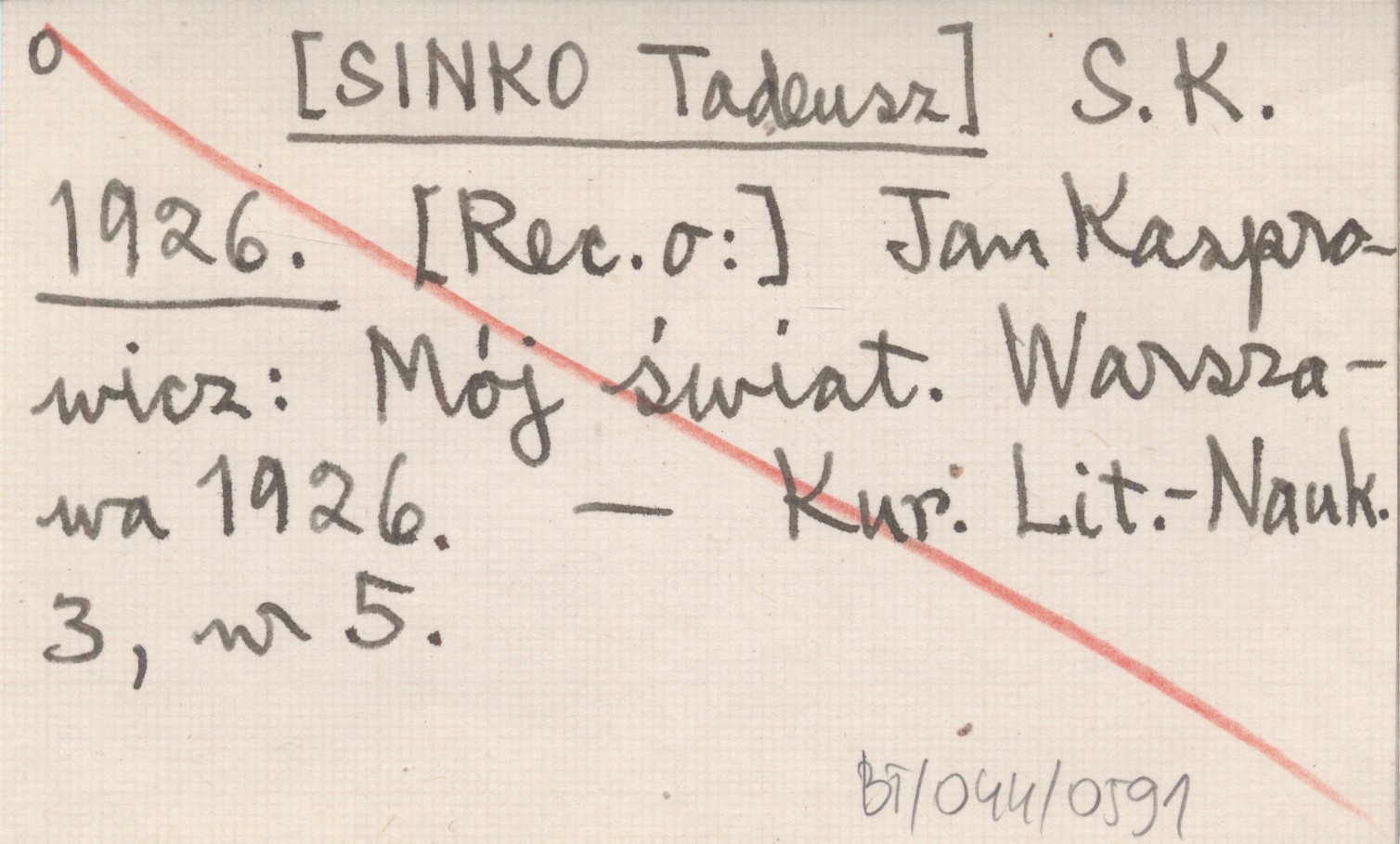 S. K. [SINKO Tadeusz] 1926 [Rec. o:] Jan Kasprowicz: Mój świat. Warszawa 1926.