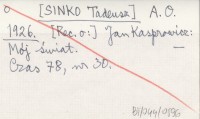 A. O. [SINKO Tadeusz] 1926 [Rec. o:] Jan Kasprowicz: Mój świat.
