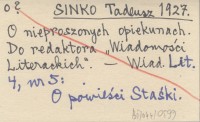 SINKO Tadeusz 1927 O nieproszonych opiekunach. Do redaktora "Wiadomości Literackich".