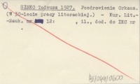 SINKO Tadeusz 1927 Pozdrowienie Orkana. (W 30-lecie pracy literackiej).