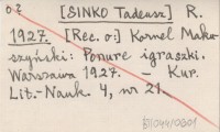 R. [SINKO Tadeusz] 1927 [Rec. o:] Kornel Makuszyński: Ponure igraszki. Warszawa 1927.