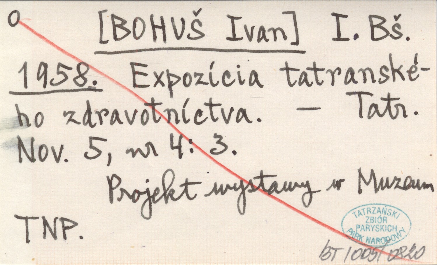 I. Bš. [BOHUŠ Ivan] 1958 Expozícia tatranského zdravotníctva.