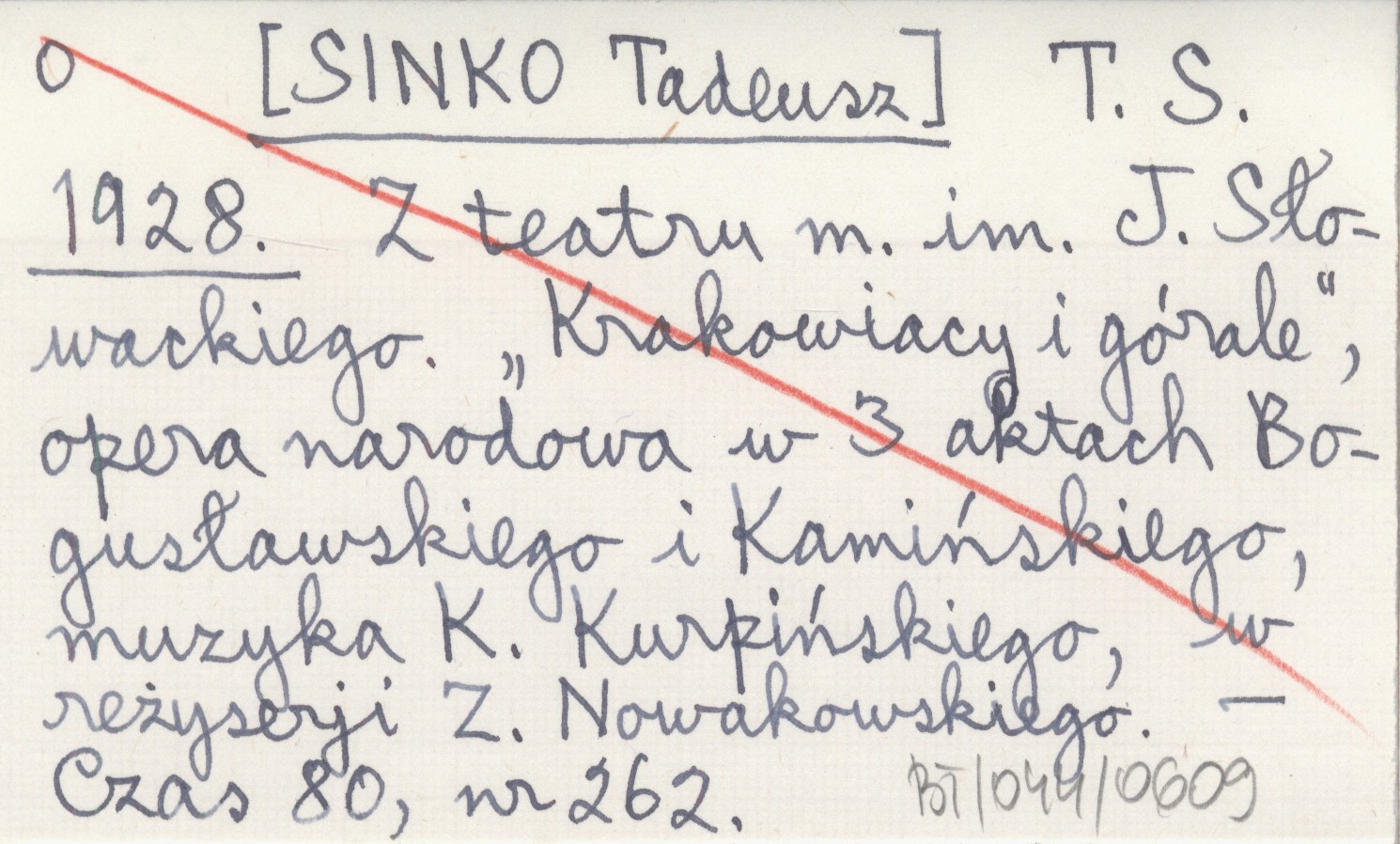 T. S. [SINKO Tadeusz] 1928 Z teatru m. im. J. Słowackiego. "Krakowiacy i górale", opera narodowa w 3 aktach Bogusławskiego i Kamińskiego, muzyka K. Kurpińskiego, w reżyserji Z. Nowakowskiego.