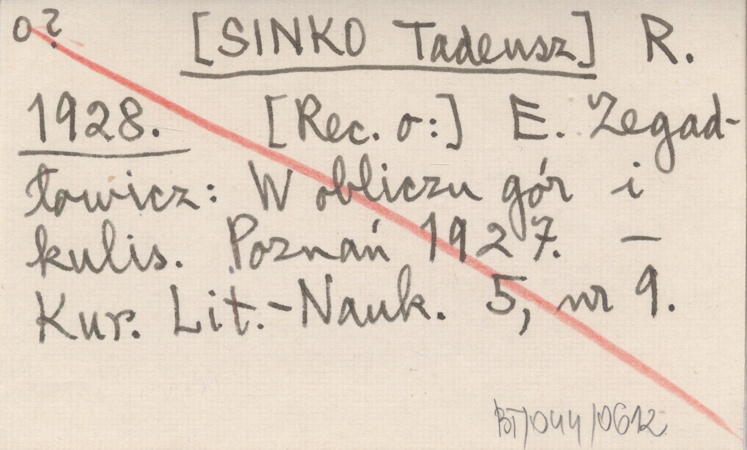 R. [SINKO Tadeusz] 1928 [Rec. o:] E. Zegadłowicz: W obliczu gór i kulis. Poznań 1927.